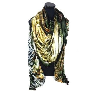 S_2149007DK - DELUXE 2-SIDED TRIANGLE SCARF GREEN - BROWN SCOOPS (1st)