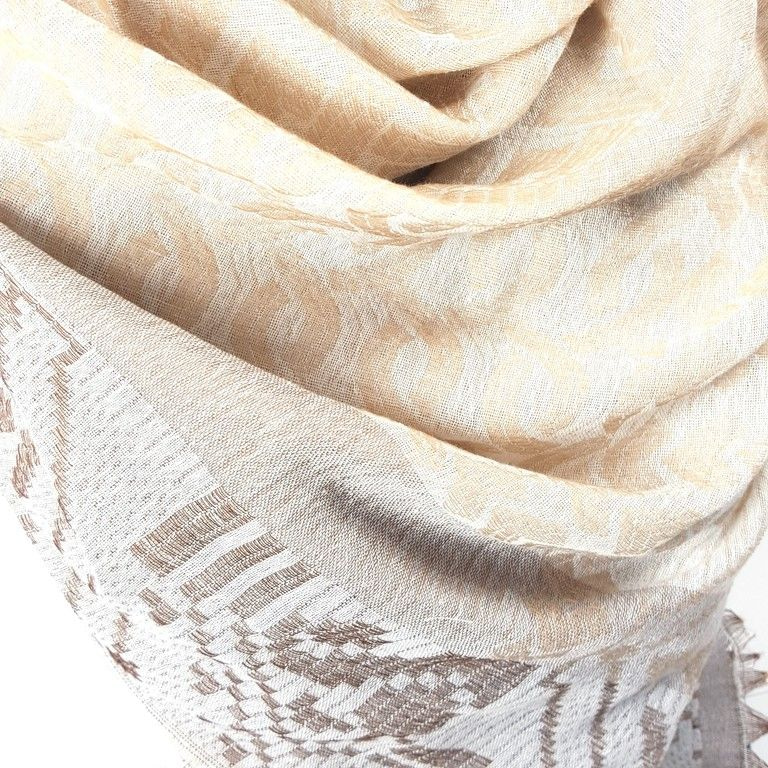 S_6116051B - SQUARE SCARF CREAM - BROWN BAND (1st)