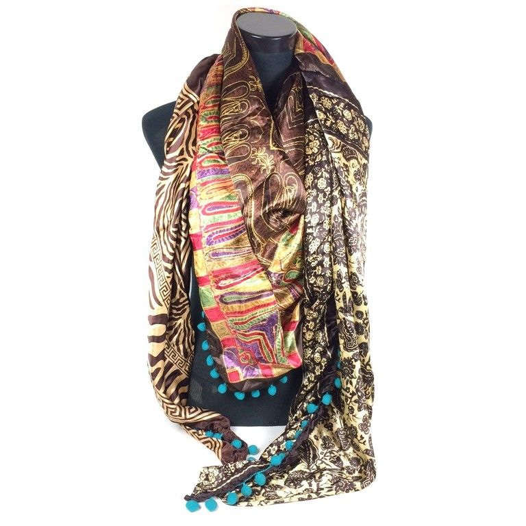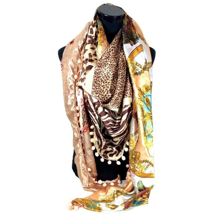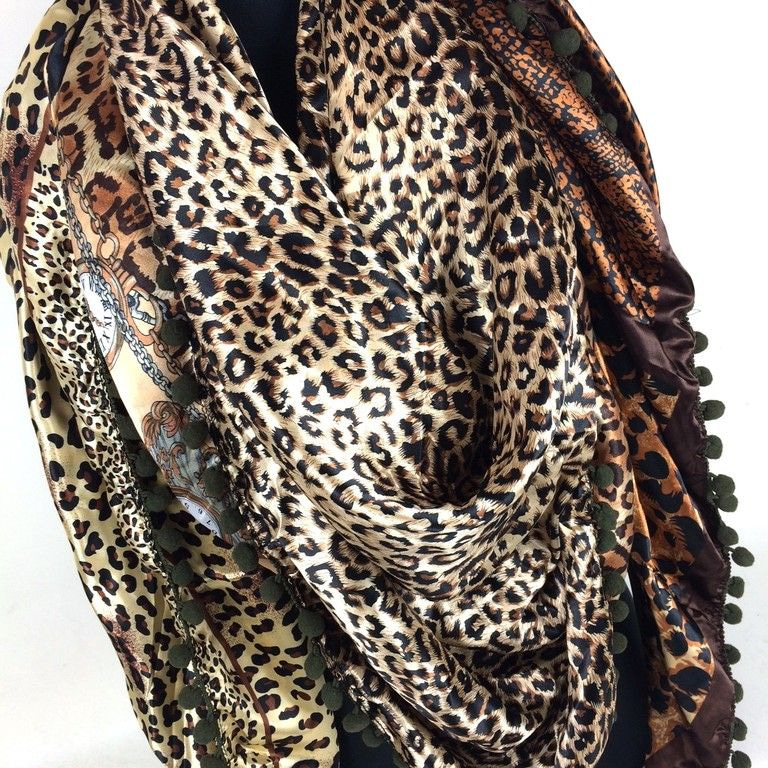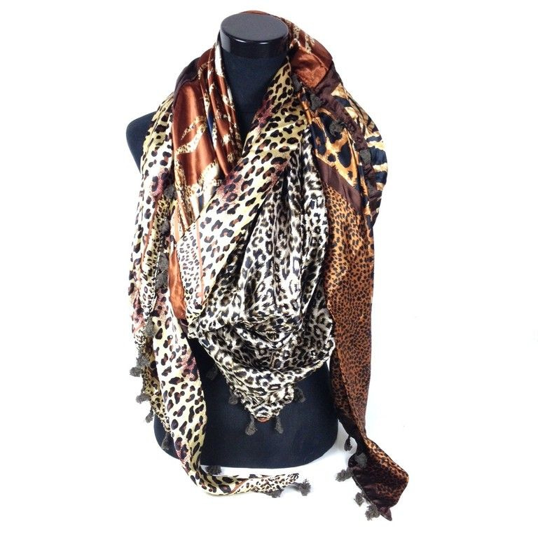S_900018B - SCARF WITH CHEETAH PRINT OLD BROWN / TAUPE (1st)