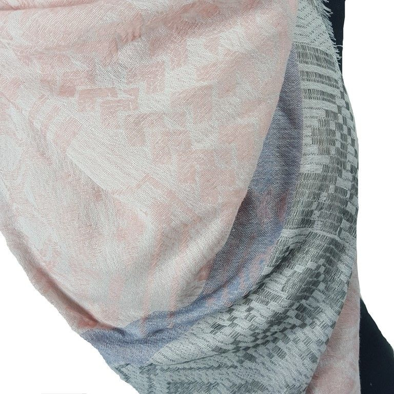 S_2149007AB - LUXURY 2-SIDED TRIANGLE SCARF GREY / PINK / GREEN (1st)