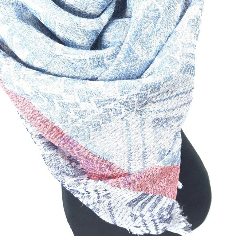 S_6116051F - SQUARE SCARF BLUE - RED BAND (1st)