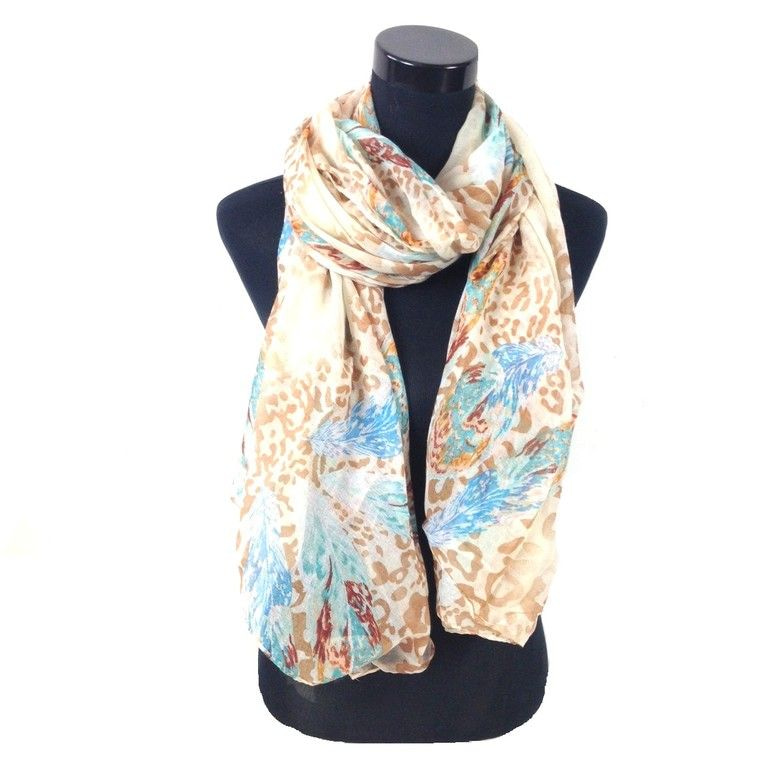 S_2417503 - LOVELY FEATHERS SCARF WITH BROWN / CREAM (1st)