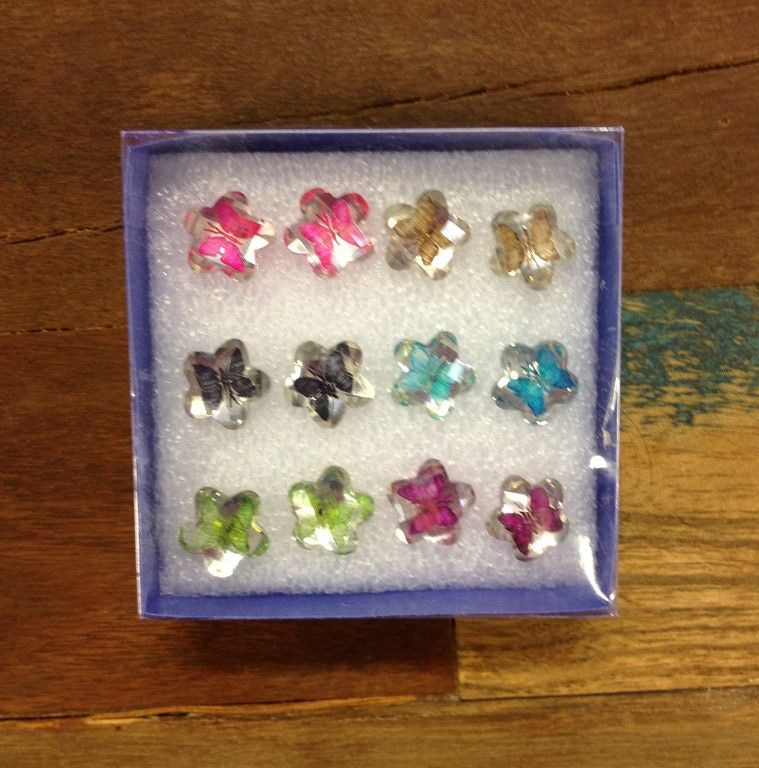 S_600821A - EARRINGS BUTTERFLY / FLOWER (18st)