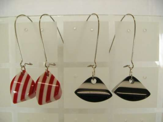 S_70189 - Art.nr: 70189 - EARRINGS RED / WHITE / BLACK / WHITE (12pcs)