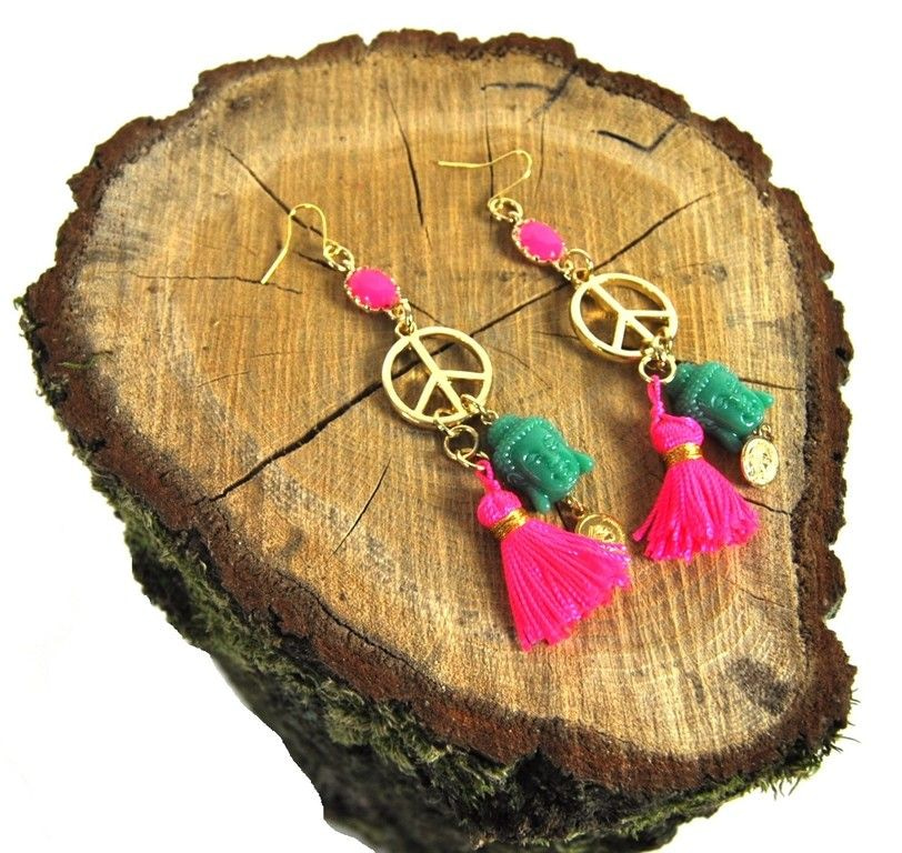 S_5675108 - IBIZA LOOK EARRINGS FUCHSIA / GREEN BUDDHA (1st)