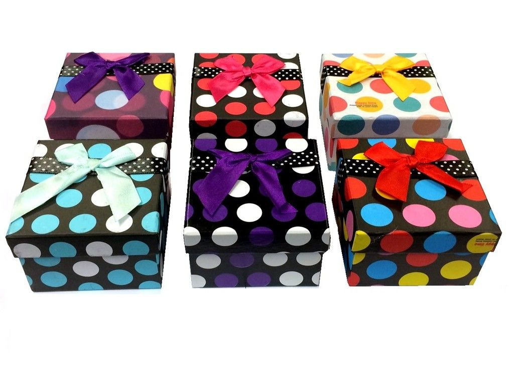 S_710004C - PACKING BOX WITH BOW / DOTS - MULTI COLOR (6pc)