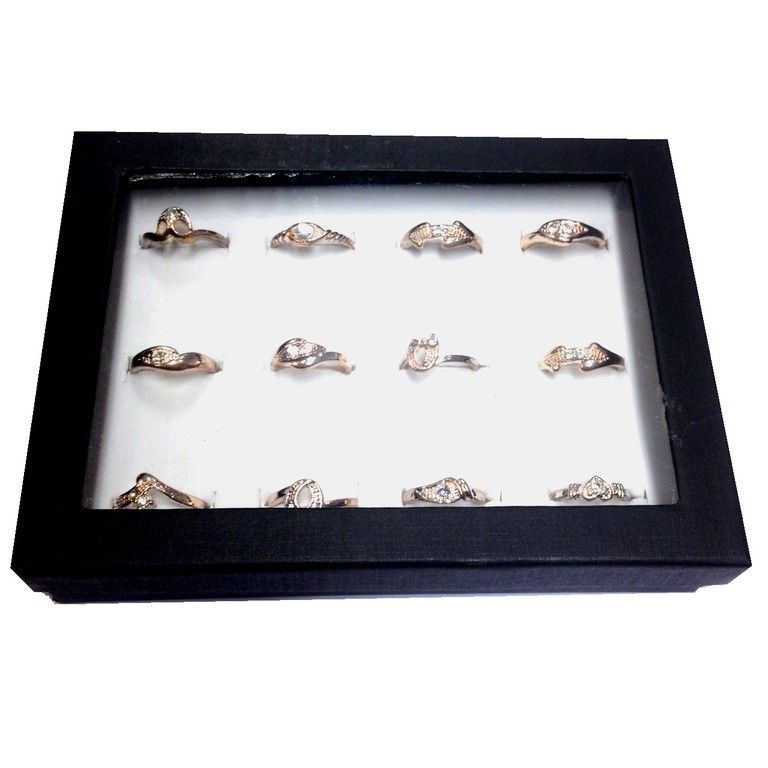 S_86618E - RINGS INCLUDING DISPLAY BOX GOLD WITH STRASS (12st)