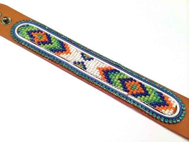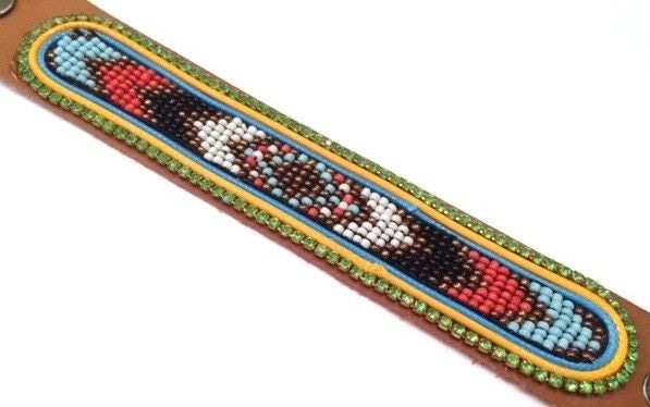 S_811256R - LEATHER IBIZA GREEN RHINESTONE BRACELET AZTEK (1st)