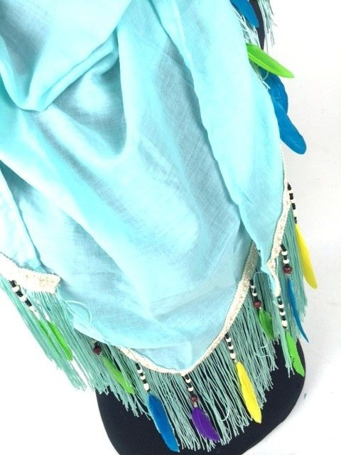 S_2150202 - LUXURY TRIANGLE SCARF FRILLS / SPRINGS / BEADS MINT / BLUE (1st)