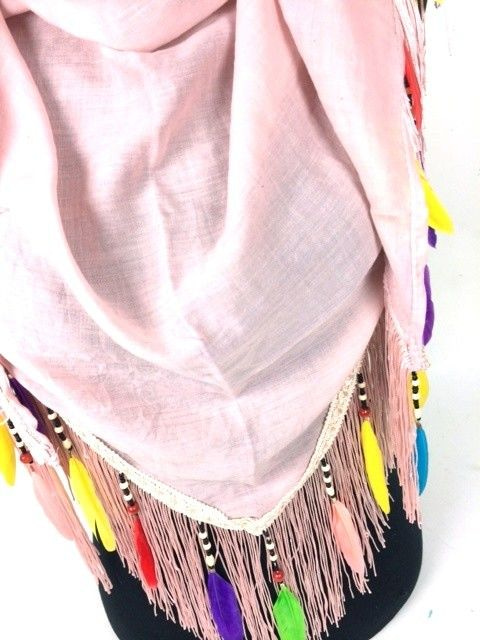S_2150303 - LUXURY TRIANGLE SCARF FRILLS / SPRINGS / BEADS old pink (1st)