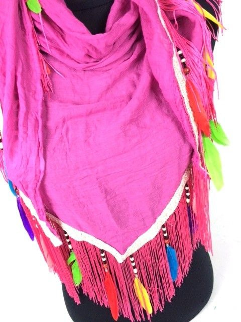 S_2150305 - LUXURY TRIANGLE SCARF FRILLS / SPRINGS / FUCHSIA BEADS (1st)
