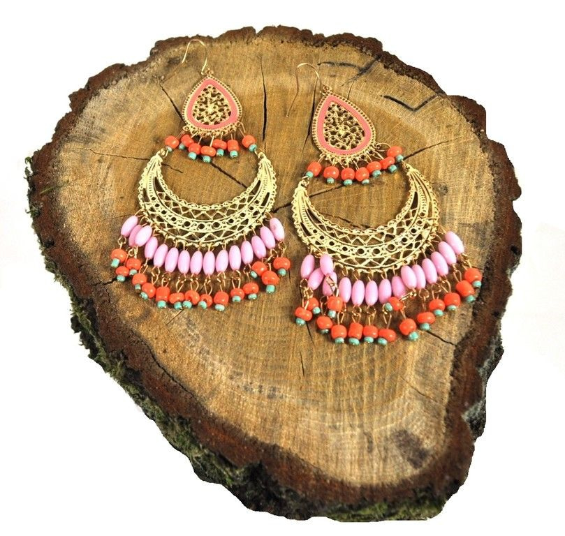 S_600755D - EARRINGS 3 BIG SPRINGS WITH DRIP SHAPE PINK (1st)