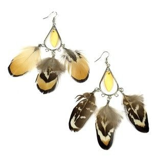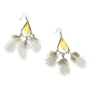 S_619118C - EARRINGS BEIGE / GOLD feathers (1st)