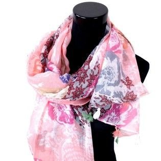 S_900007A - SCARF WITH PRINT AND PINK tassels (1st)