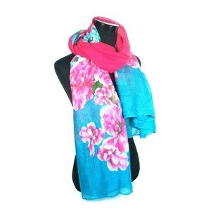 S_811926A - SCARF FLOWERS TURQIOUSE / FUCHSIA (1st)