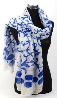 S_710015 - Art.nr: 710015 - SCARF BLUE / WHITE BAROQUE (2pc)