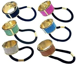 S_811717G - HAIR ELASTIC BAND WITH COVER CLIP GLITTER COLOURS MIX (12st)