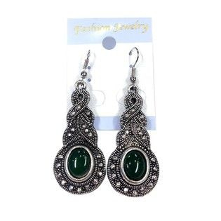 S_600807A - MODERN EARRINGS OVAL GREEN (1st)