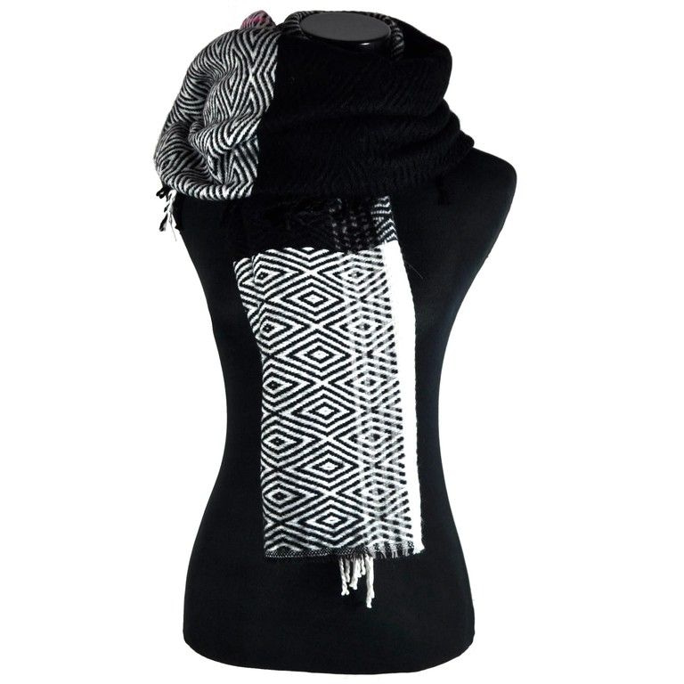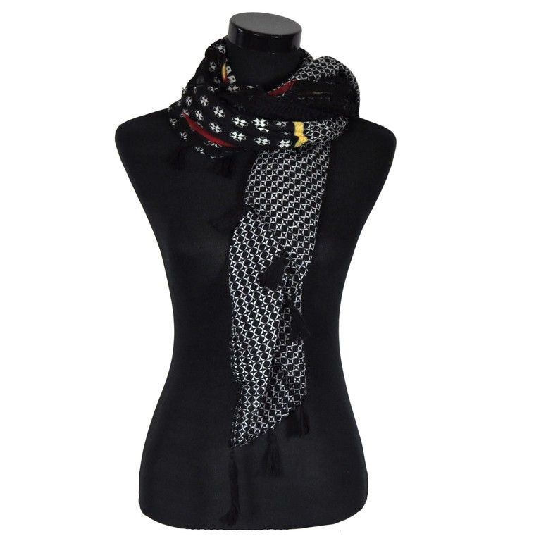 S_2502006 - SCARF SQUARE BLACK / WHITE - FRILLS (1st)