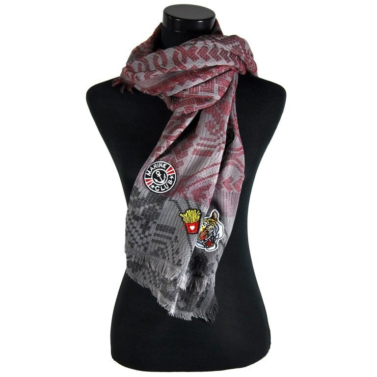 S_7164594C - GREY / RED SQUARE SCARF WITH PATCHES (1st).