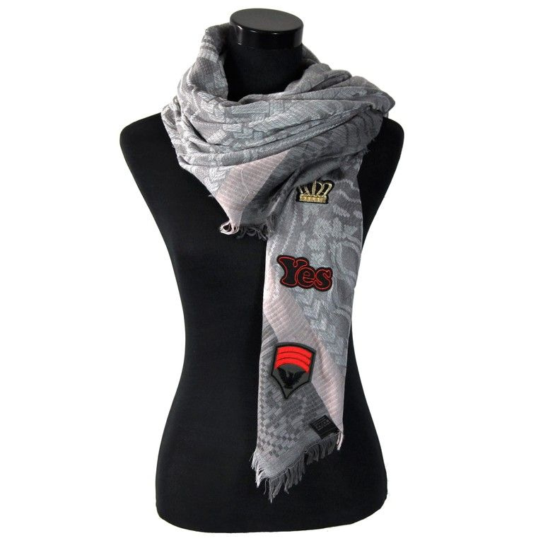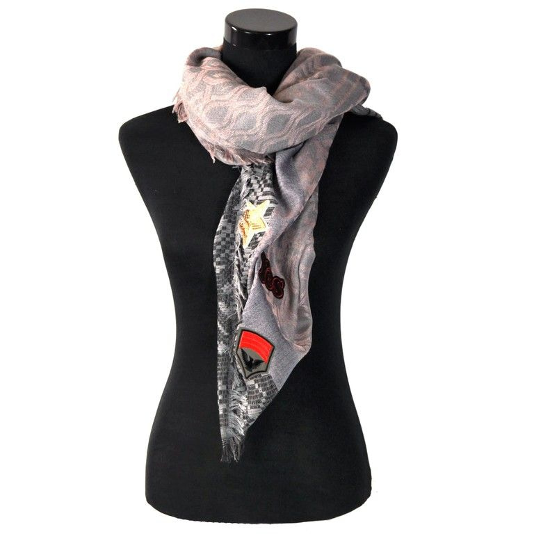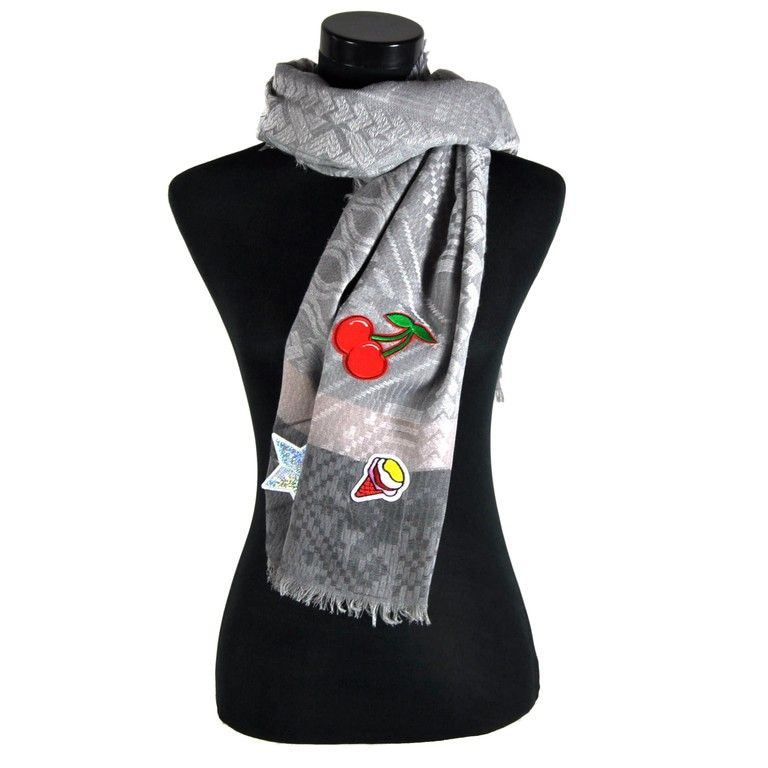 S_7164504E - GREY SQUARE SCARF WITH PATCHES (1st).