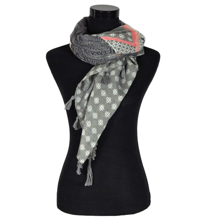 S_7164504D - GREY / PINK SQUARE SCARF WITH PATCHES (1st).