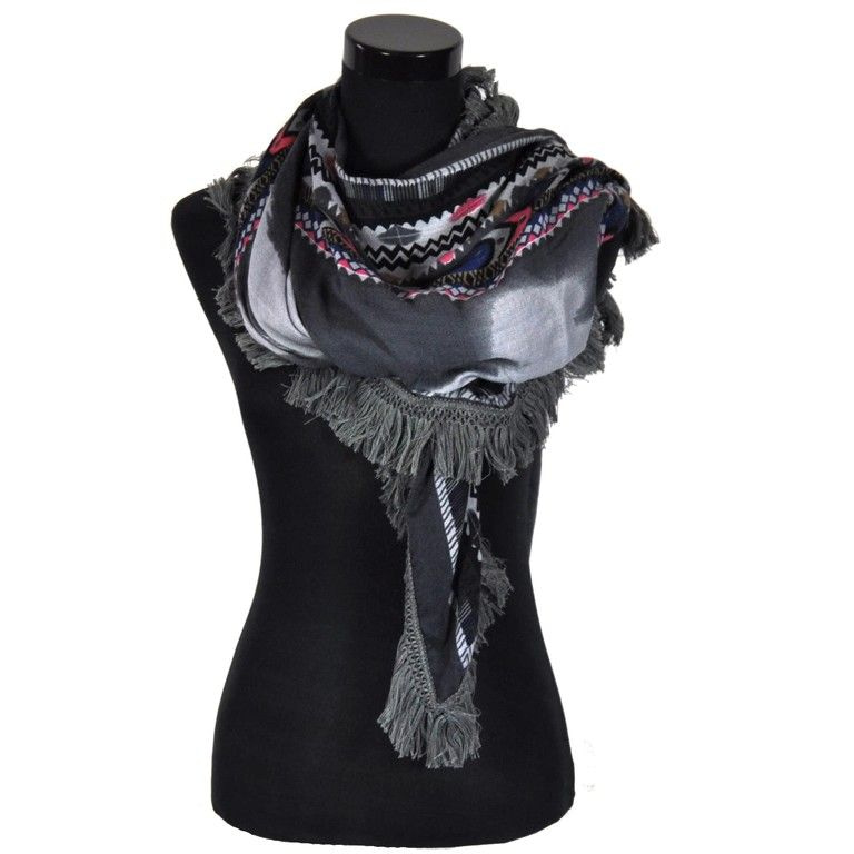 S_790839B - GREY SQUARE SCARF WITH FRILLS (1st).
