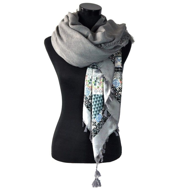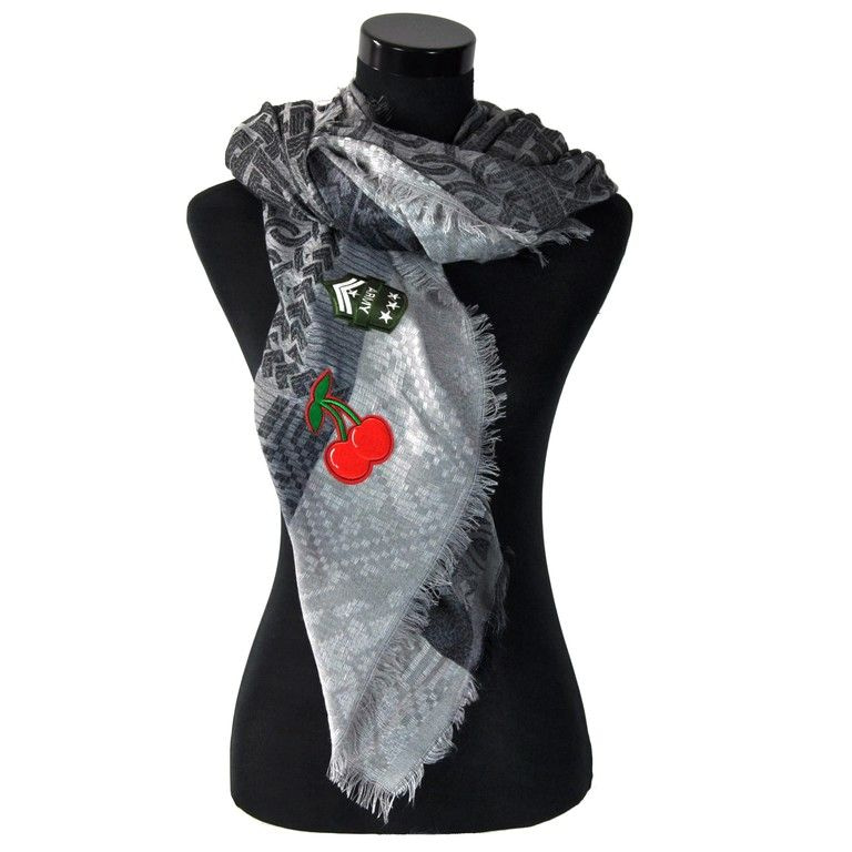 S_7164594A - GREY SQUARE SCARF WITH PATCHES (1st).