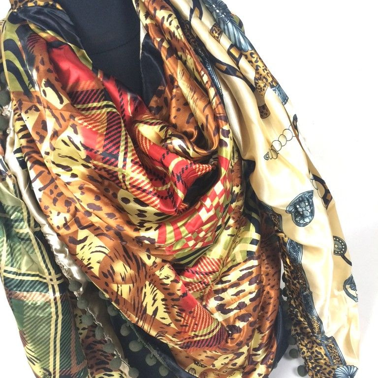 S_7164504C - GREY SQUARE SCARF WITH PATCHES (1st).
