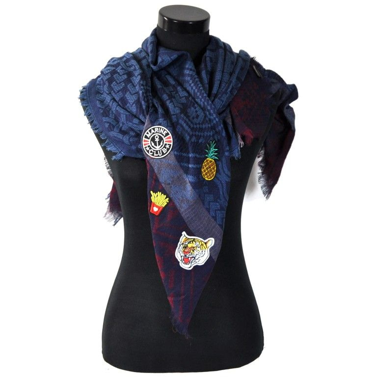 S_7164594B - BLUE SQUARE SCARF WITH PATCHES (1st).