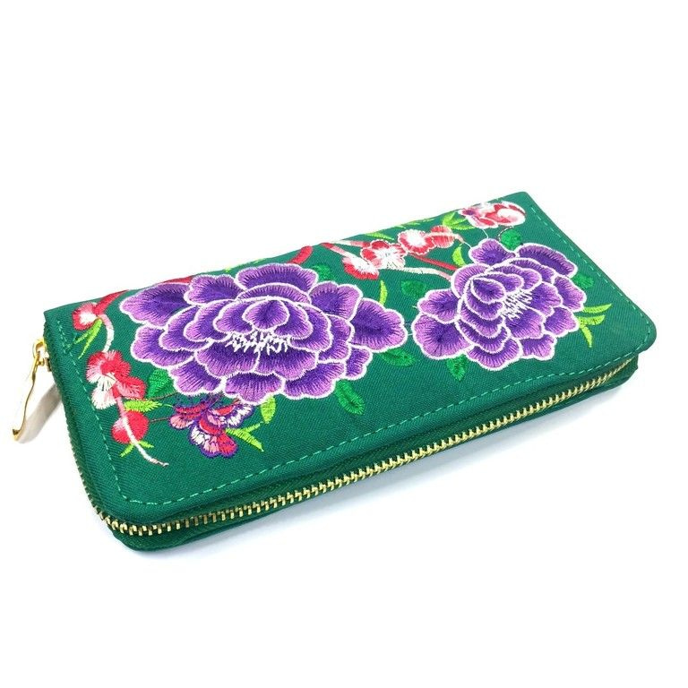 S_812022AD - WALLET CHARACTERISTICS GREEN FLORAL PURPLE WITH PINK (1st)