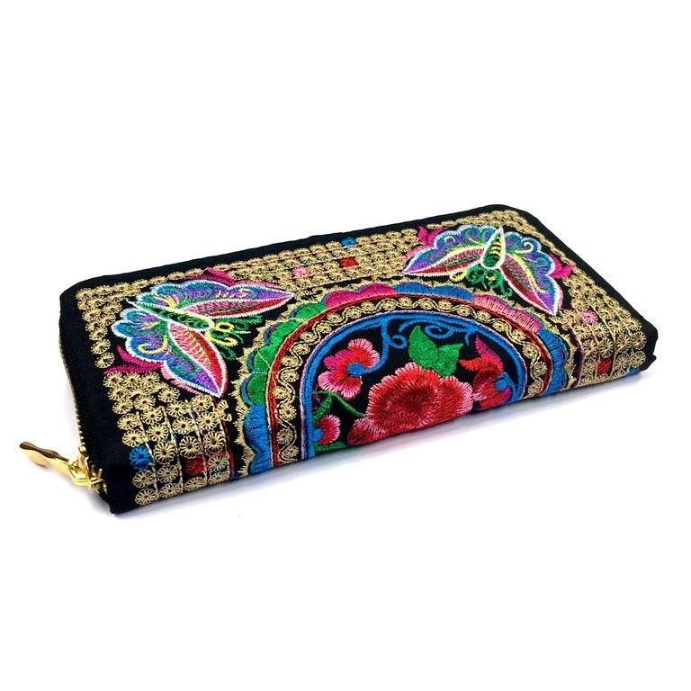 S_812022S - WALLET BLACK FLOWER CHARACTERISTICS / BLUE BUTTERFLY (1st)