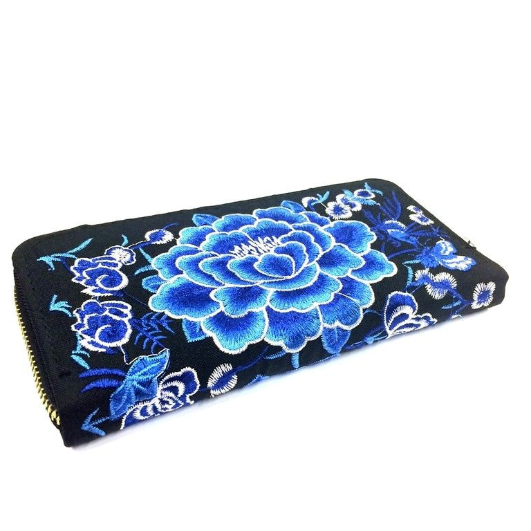 S_812022AB - WALLET BLACK CHARACTERISTIC BLUE FLOWER (1st)