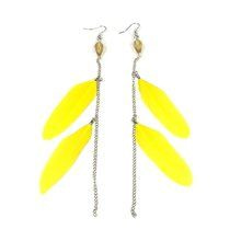 S_600747E - EARRINGS 2 FEATHERS WITH DIAMOND BEAD YELLOW (1st)