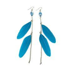 S_600747D - EARRINGS 2 FEATHERS WITH DIAMOND BEAD BLUE (1st)