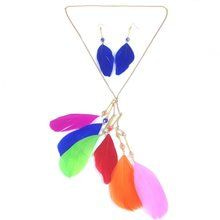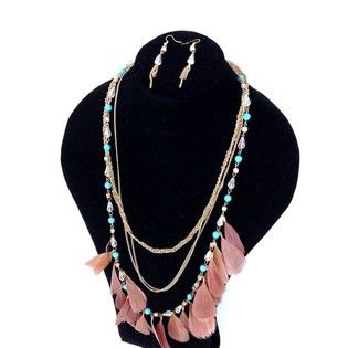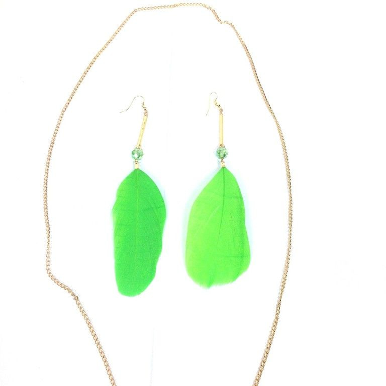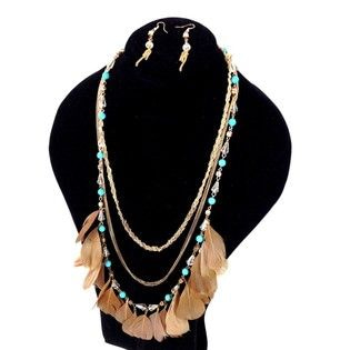 S_600757G - EXCLUSIVE EARRINGS NECKLACE WITH FEATHERS BROWN (1st)