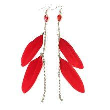 S_600747A - EARRINGS 2 FEATHERS WITH DIAMOND BEAD RED (1st)
