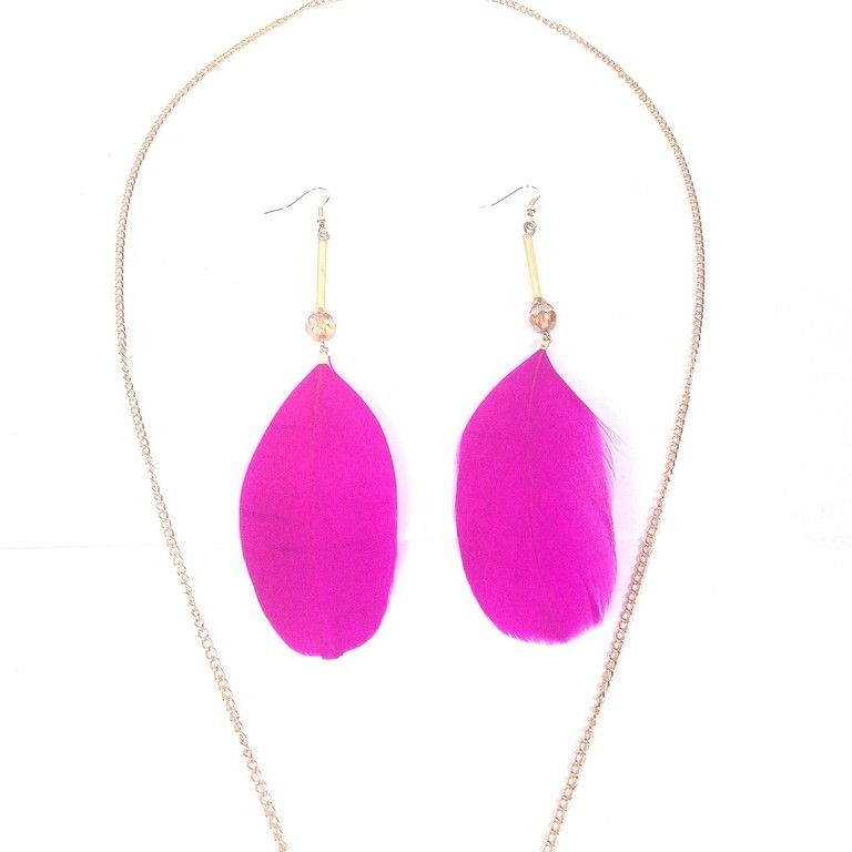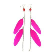 S_600747B - EARRINGS 2 FEATHERS WITH DIAMOND BEAD FUCHSIA (1st)