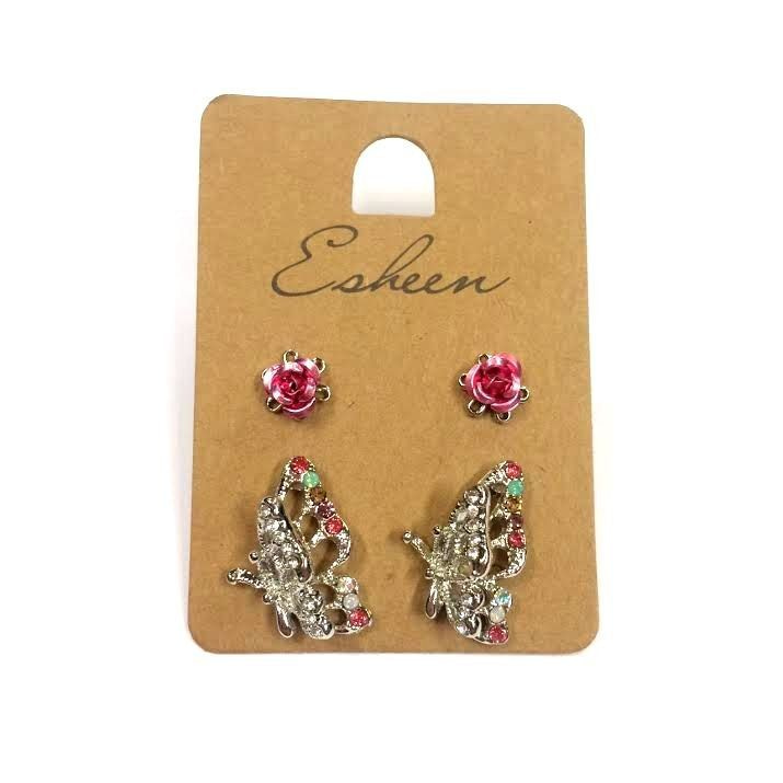 S_812204 - 2 PAIR EARRINGS ROOSJE / RHINESTONE BUTTERFLY (4st)