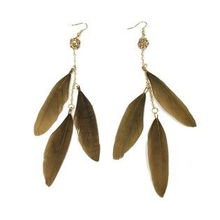 S_600746F - EARRINGS WITH FEATHERS 3 BOLLETJE STRASS BROWN / TAUPE (1st)