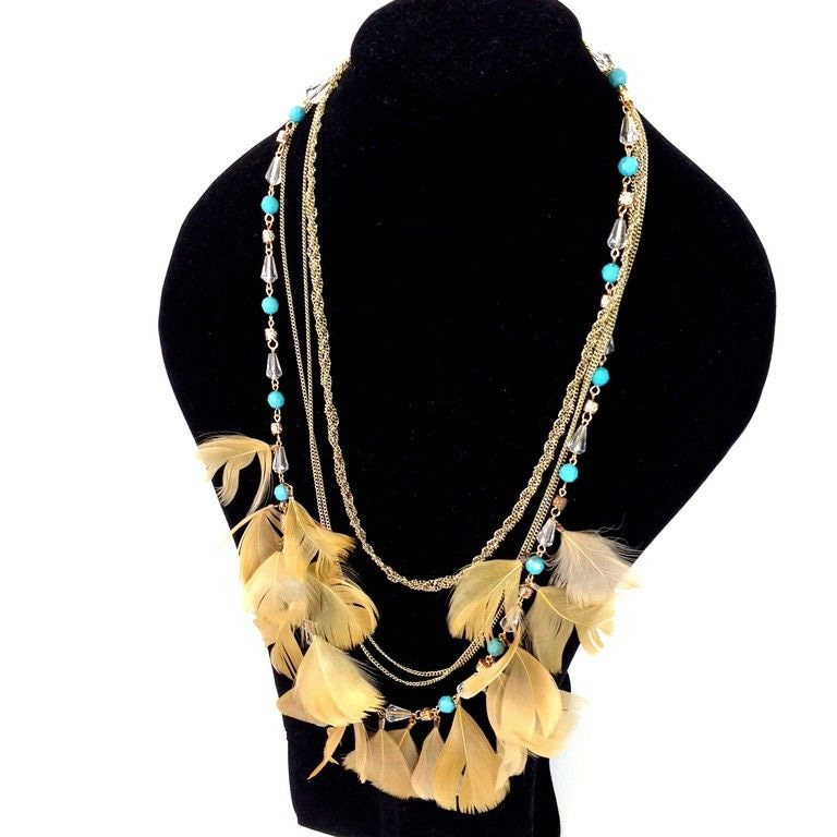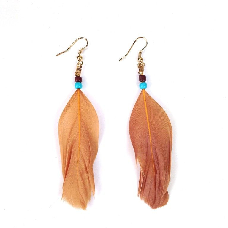 S_600762A - EXCLUSIVE EARRINGS NECKLACE WITH FEATHERS LIGHT BROWN (1st)