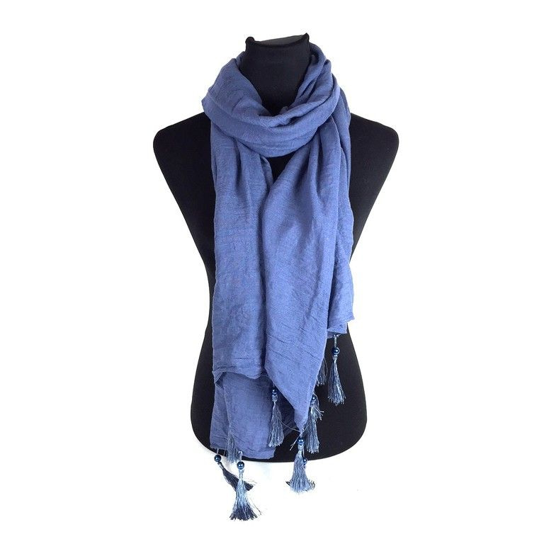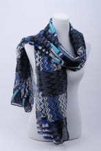 S_709809 - SCARF WITH PRINT BLUE BLACK (2pcs)
