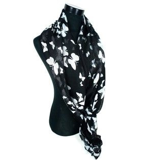 S_811925A - SCARF BUTTERFLIES CREAM / BLACK (1st)