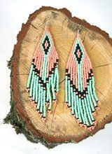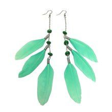 S_600761D - EARRINGS FEATHERS WITH BEADS GREEN (1st)