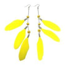 S_600761A - EARRINGS FEATHERS WITH BLACK BEADS (1st)