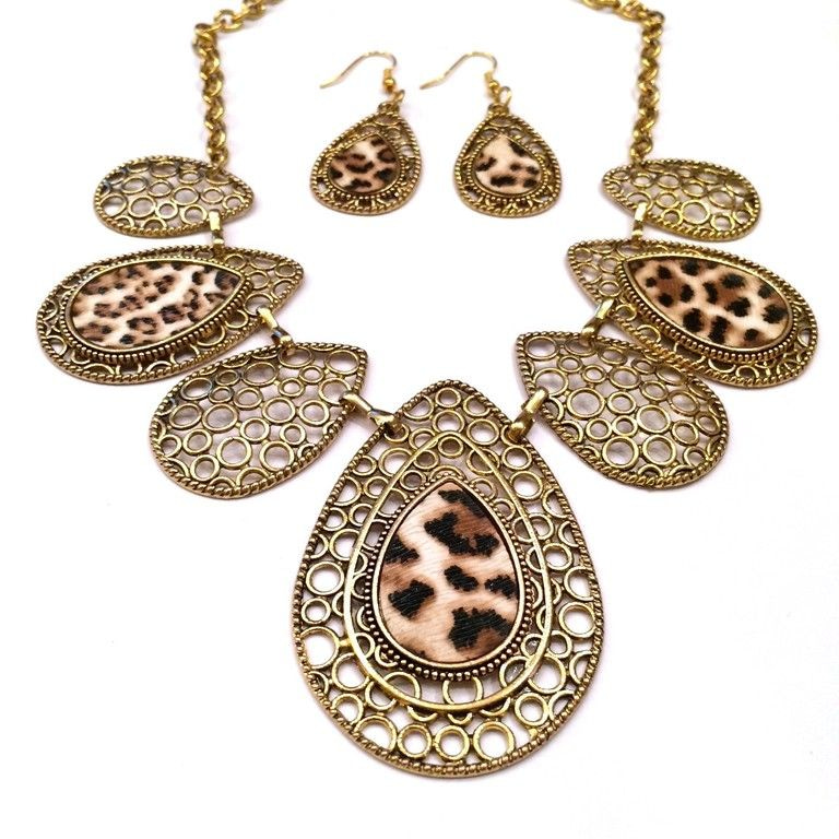 S_600131 - IBIZA LOOK NECKLACE AND EARRINGS WITH TIGER PRINT (1st)