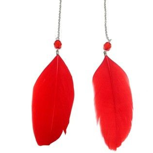 S_600787C - EARRINGS A FEATHER AND RED BEAD (1st)