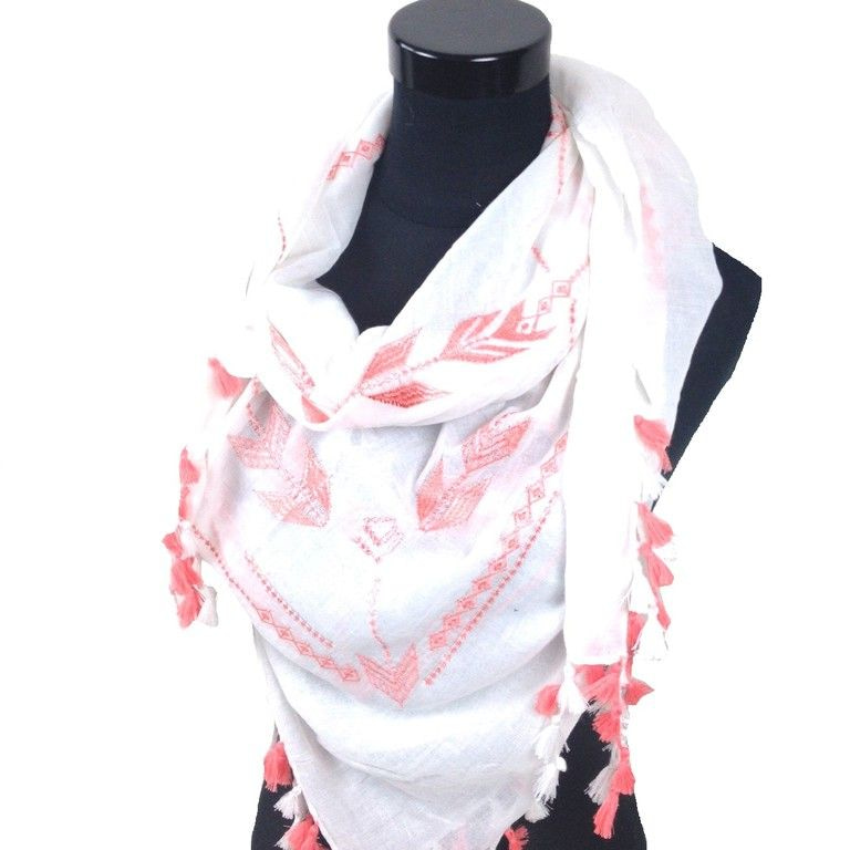 S_2421303 - IBIZA LOOK BEAUTIFUL SCARF with tassels OFF WHITE / DARK SALMON (1st)