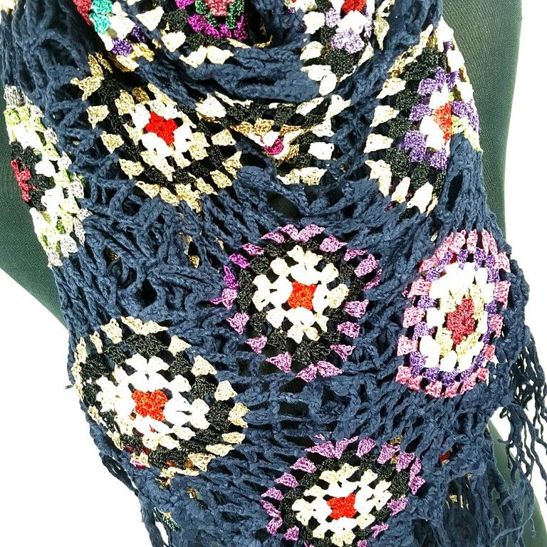 S_6118783F - TRIANGLE SCARF / SHAWL CROCHET - DARK BLUE (1st)