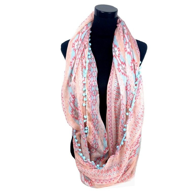 S_811912D - CHILDREN SCARF WITH SCOOPS MULTI / PINK / BLACK (1st)